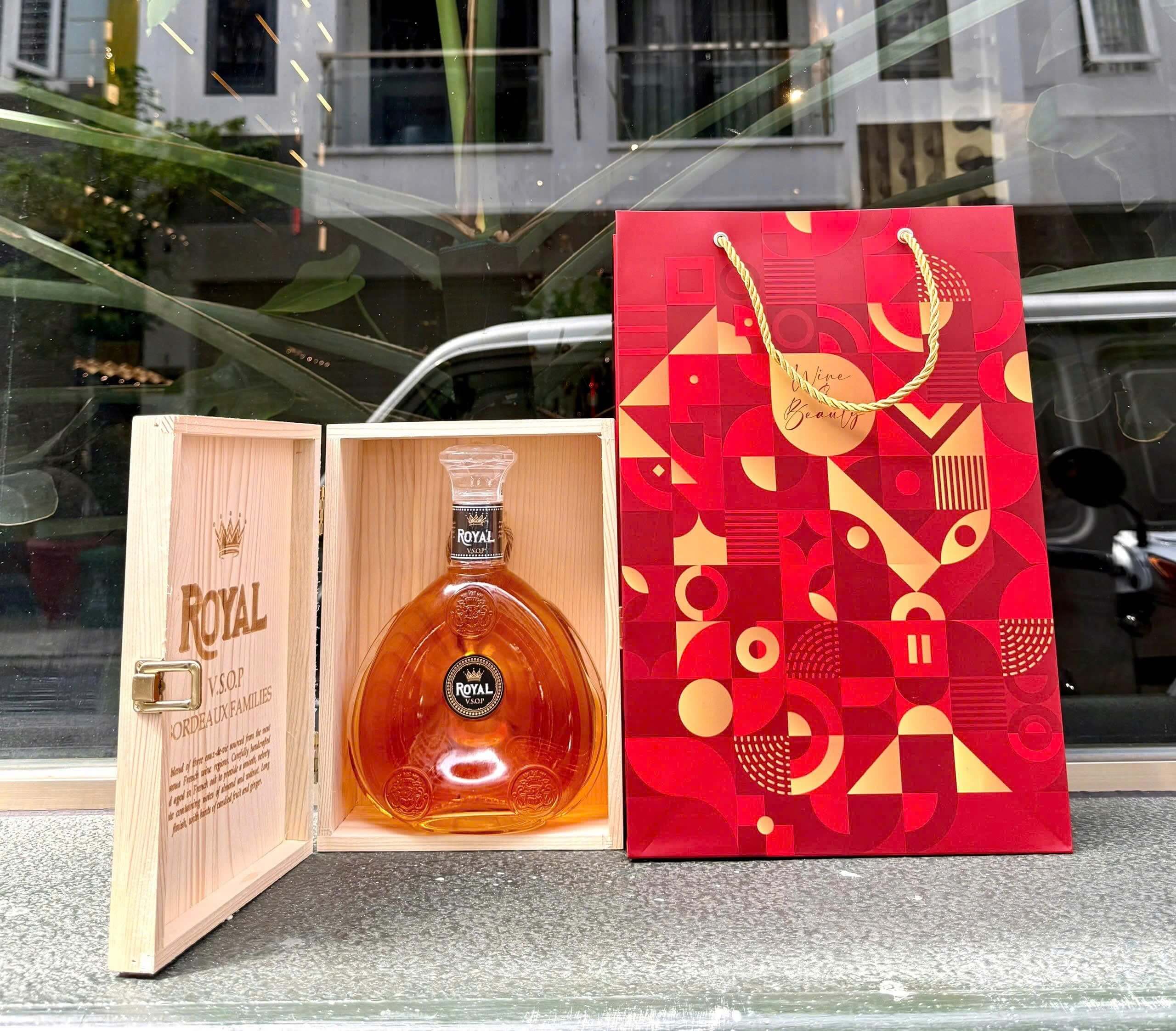 -Tên sản phẩm:RƯỢU BRANDY ROYAL V.S.O.P. Đây là dòng sản phẩm BRANDY của nhà sản xuất BORDEAUX FAMILIES nổi tiếng, Sản phẩm được cưng cất từ nho,chế biến cẩn thận và ủ trong thùng gỗ sồi Pháp , cho ra sản phẩm với hương vị của hạnh nhân,pha với chút kẹo. Tạo nên hương vị mượt mà êm dịu quyến rủ